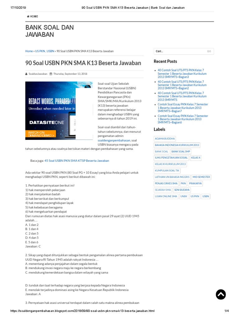 Soal Usbn Pkn Sma 2018 : Soal Usbn Pkn Sma 2016 Pdf Jawabanku Id : Maybe you would like to learn more about one of these?